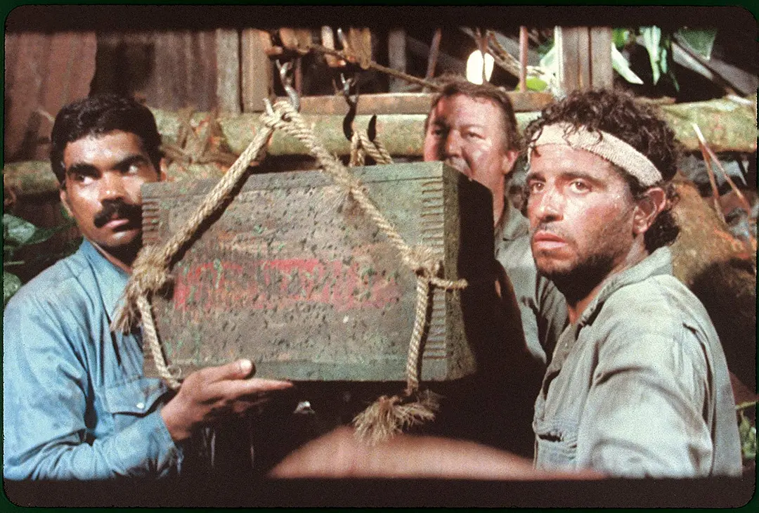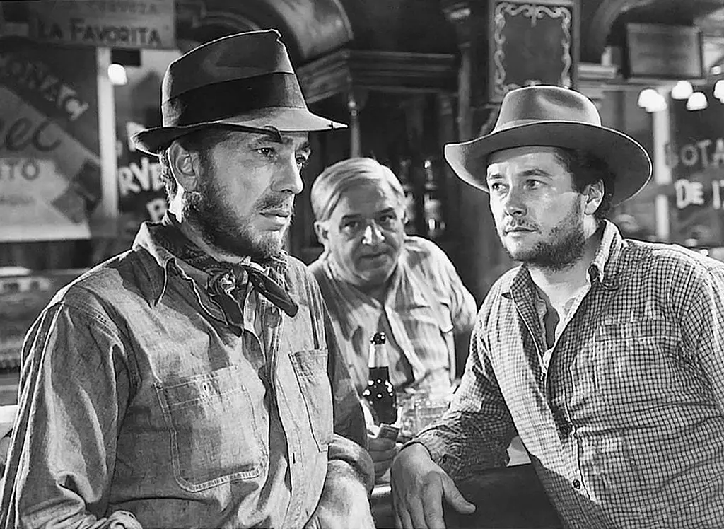 最后一部,《碧血金沙》,1948年的,烂番茄100%满分,约翰・休斯顿导的,三个美国人,跑到墨西哥去找金矿,本来是兄弟,后来为了金子互相猜忌,贪婪把人都逼疯了,亨弗莱・鲍嘉演的多布斯,疑心病特别重,沃尔特・休斯顿演的霍华德,就很有智慧,看透了贪婪的下场,电影拍得不煽情,这种不装的风格,金最欣赏。