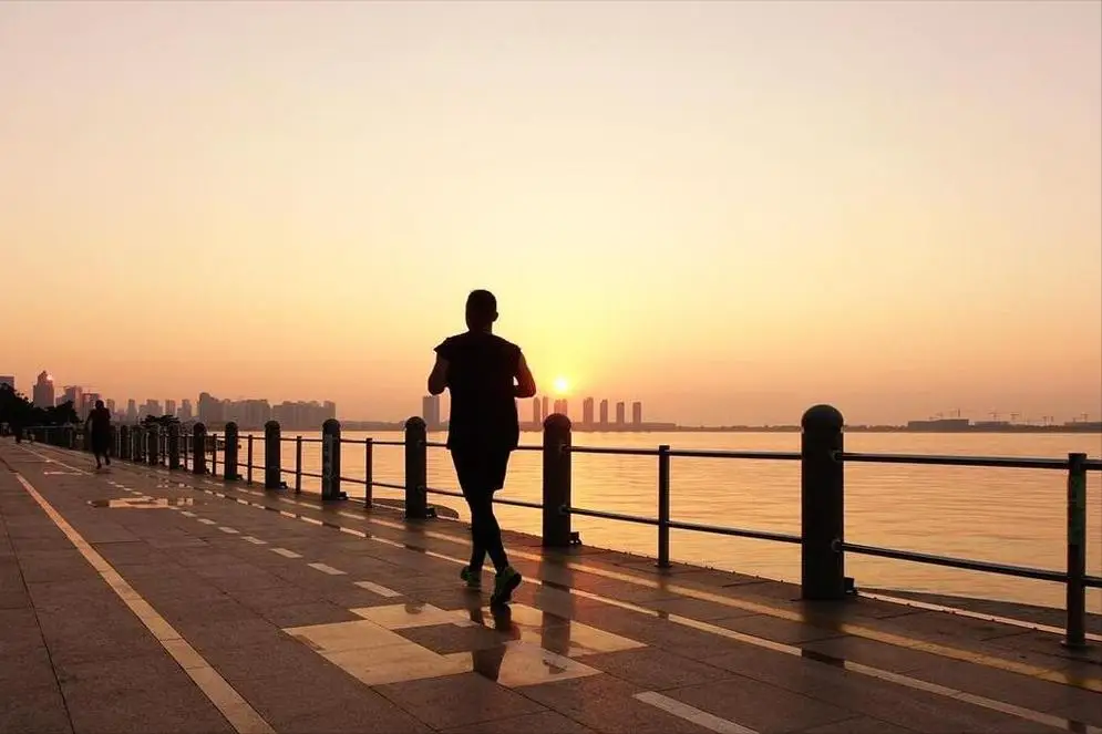 现在他每天雷打不动跑一小时,从小区跑到江边。